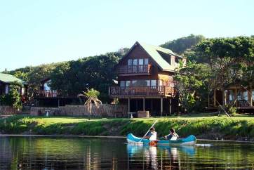 At Rest provides self catering accommodation in Wilderness, Garden Route. Our charming self-catering log cabin at Pirates Creek, in the heart of the Garden Route in the Wilderness National Park, close to the beach. It is a popular weekend and holiday breakaway destination with something to offer for the whole family. Situated on the banks of the Touw River, it has an unspoilt, breath-taking view over the tranquil river and mountains. The self catering accommodation consists of: 3 bedroom log cabin is fully equipped for a comfortable, peaceful stay. Rooms are equipped with bedding and towels. The main bedroom is upstairs and furnished with a queen size bed. It has a separate dressing room/study area with en-suite bathroom with bath/shower, toilet and hand wash basin. From the bed you have a beautiful view over the river and mountains. The main bedroom extends onto a timber deck from where the beauty of the luscious vegetation of the Wilderness National Park can be appreciated. The second bedroom upstairs contains two comfortable single beds. The third bedroom is downstairs and contains a queen size bed with en-suite bathroom with bath, toilet and hand wash basin. The kitchen is fully equipped for six guests with crockery, cutlery, cooking utensils, a fridge, microwave, kettle, toaster and oven/stove - everything you'll need for a memorable self catering stay in Wilderness. The kitchen, living and dining area on the ground floor is of open plan design. It is equipped with a dining table and six chairs, two comfortable double seat leather couches and two additional loose seats. Here you can enjoy your own choice of satellite TV with free Premium Bouquet DStv included.